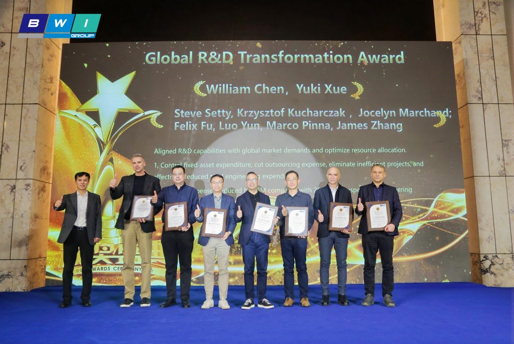 京西智行管理团队由衷肯定了各地团队在过去一年里为推动公司发展、创造卓越业绩所做出的贡献。刘喜合郑重地向来自世界各地的优秀团队颁发了多项极具分量的成就奖项,包括:全球管理成本优化奖、全球研发变革奖、灵活组织变革奖、战略项目执行奖、中国磁流变悬架突破奖、全球供应链升级及压缩成本奖、数字化发展奖等。